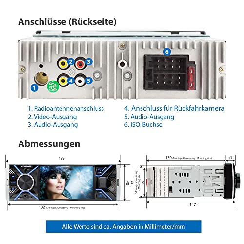 XOMAX XM-V417 Autoradio con Schermo da 4.1" / 10 cm I Bluetooth | USB, SD, AUX | RDS | Collegamenti per telecamera per la visione posteriore e telecomando al volante I 7 Colori | 1 DIN