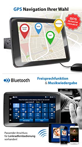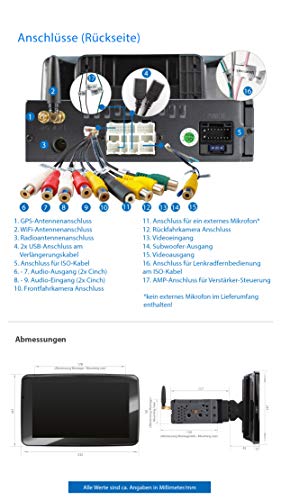 1 DIN + Ingresso per telecamera front/retromarcia, Uscita subwoofer, Comandi al volante, microfono esterno + con antenna GPS / WiFi, Telecomando senza pila