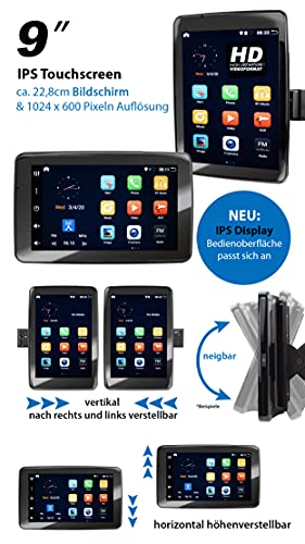 IPS Monitor touchscreen da 22,8 cm (9'') + Risoluzione HD. Alta definizione 1024 x 600 pixel + monitor flessibile, inclinabile, orizzontalmente, verticale + Mirroring dello schermo + pratica suddivisione in cartelle