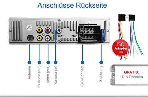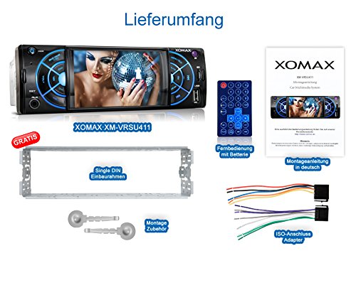 XOMAX XM-VRSU411 Autoradio con Schermo 4.1" I RDS I USB, SD, AUX I 7 LED colori: blu, rosso, giallo, viola, rosa, verde, bianco, turchese I Collegamento per telecamera retromarcia I 1 DIN