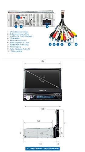 XOMAX XM-VRSUN741BT Autoradio con navigatore GPS I Bluetooth I Schermo Touch Screen 7'' / 18cm HD, I USB, SD I Connesione per telecamera retromarcia, comandi al volante e subwoofer I 1 DIN