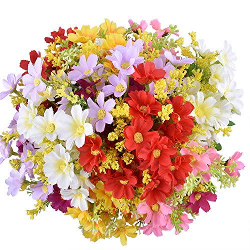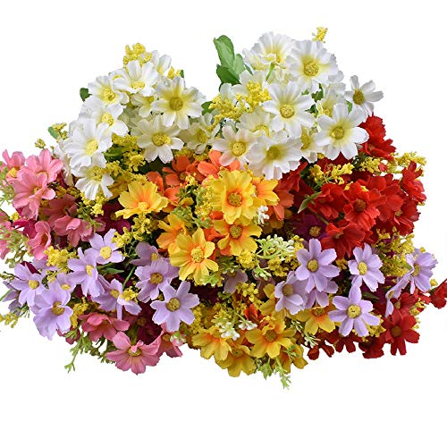 XONOR - 10 mazzi di fiori artificiali, in seta artificiale, margherite, per interni, casa, matrimoni, feste, colori assortiti