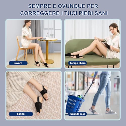 SOLLIEVO DAL DOLORE: allevia il dolore causato da dita storte, sovrapposte, alluce valgo e dita a martello. Le stecche per la correzione dell'alluce valgo forniscono un'ammortizzazione e una regolazione moderate spingendo gradualmente e delicatamente la punta nella posizione corretta. Un separatore per alluce valgo allevia il dolore dell'alluce valgo, riducendo l'attrito tra le dita dei piedi fornendo un'ammortizzazione confortevole e una correzione delicata durante le attività quotidiane.
