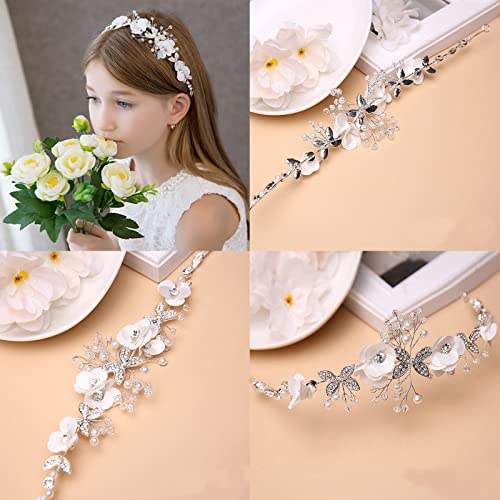 XOPOZON 2PCS Fascia per Capelli da Comunione, con Fiore Bianco Perle e Cristalli, Copricapo Principessa, Accessorio per Capelli da Sposa e Ragazza Adatto per Fotografia di Viaggio, Feste di Matrimonio