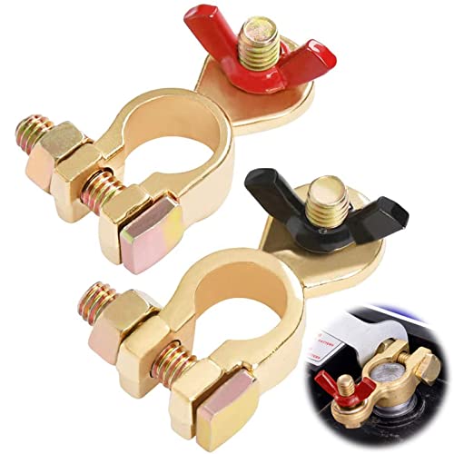 XOYTCVSYFS8 Terminali Morsetti di Batteria 12V / 24V Auto Terminale Batteria Connettore Terminale Batteria in Ottone con Dado ad Ala per dell'automobile Furgone Motociclo (1 Paio)
