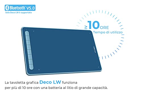 【Tecnologia Bluetooth - Senza fili, senza limiti】 La tacoletta grafica Deco LW è dotata di un chip Bluetooth v5.0, che permette di creare liberamente per oltre 10 ore senza cavo.