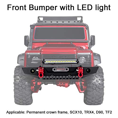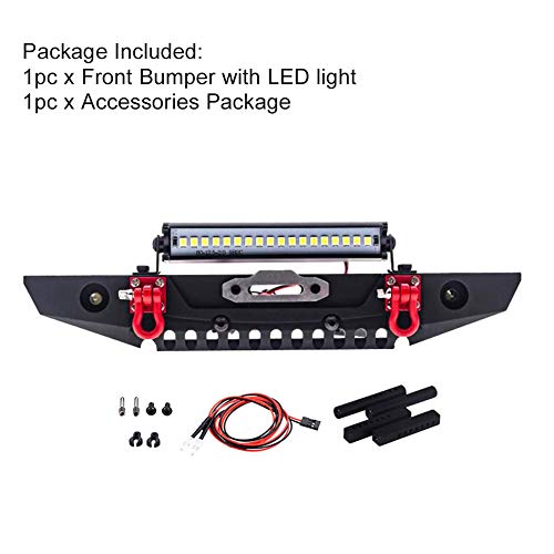 Xpccj 1:10 RC Paraurti anteriore con illuminazione a LED, paraurti anteriore in metallo per SCX10 TRX4, 190 mm di lunghezza