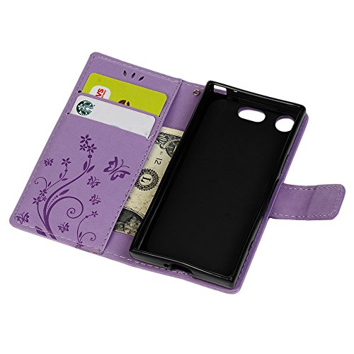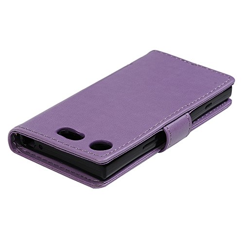 Sony Xperia XZ1 Compact Custodia Flip, YOKIRIN Custodia Libro Cover Leather, Con Il Supporto, Chiusura Magnetica E Slot Per Schede / Tasche Per Carte Di Credito Per Sony Xperia XZ1 Conpact - Viola Chiaro