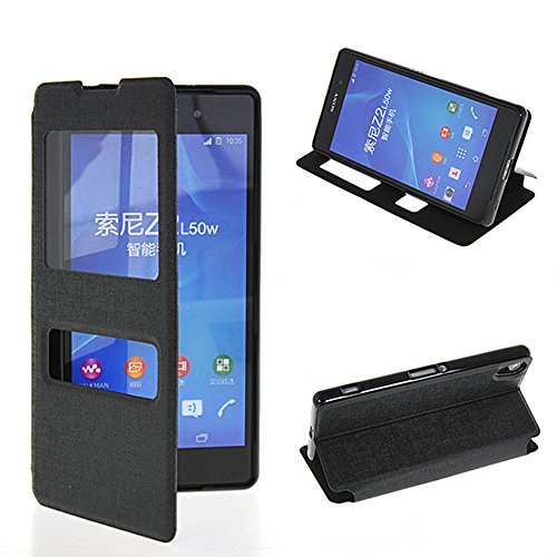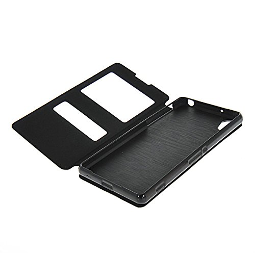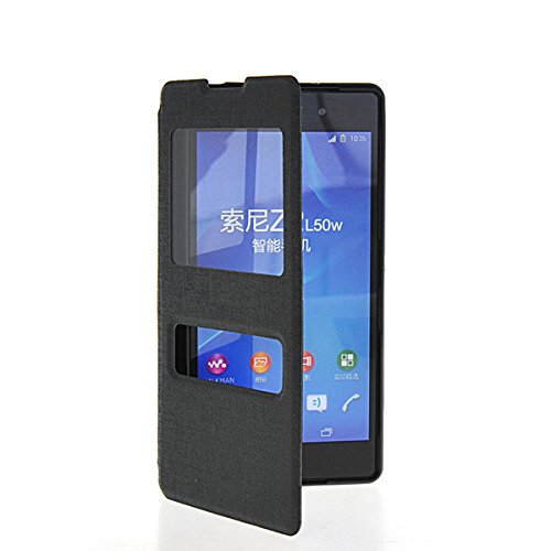 Xperia Z2 Custodia,COOLKE [Nero] PU Pelle con View Window Protettiva Flip Case Cover per Sony Xperia Z2