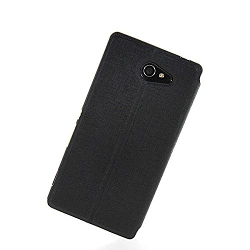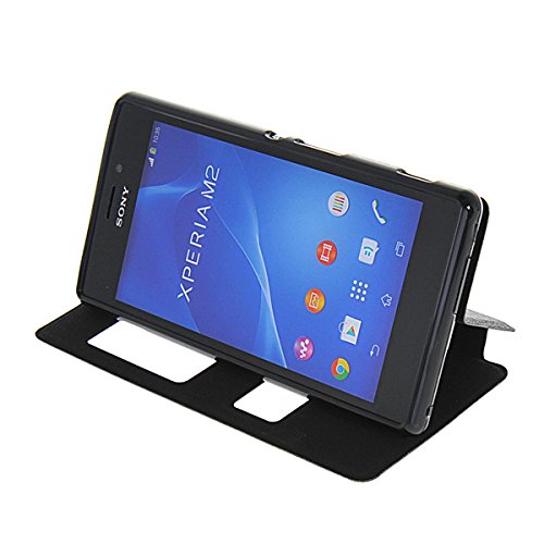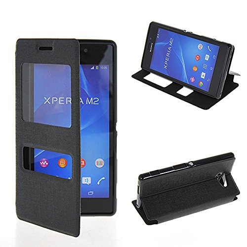 Xperia M2 Custodia,COOLKE [Nero] PU Pelle con View Window Protettiva Flip Case Cover per Sony Xperia M2 / S50H
