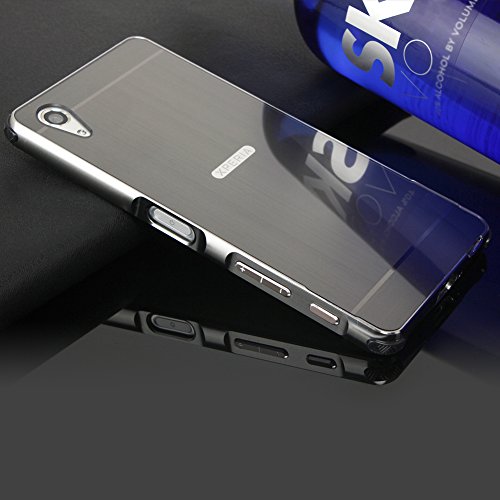 Sony Xperia X Custodia in Nero,Slynmax Lusso Mirror Case Specchio Metallo Design Schockproof Cover Custodia per Sony Xperia X Anti-Scratch 2in1 Hard Plastica PC Backcover Sodo Alluminio Telaio Metal Frame Bumper Cover Protettiva Shell Copertura Tacsa Caso Covers + 1x Nero Stylus Penna