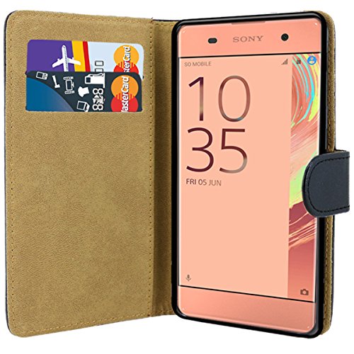 Sony Xperia Custodia sottile premium Custodia a Libro in Pelle con Pellicola Proteggi Schermo e Penna Stilo, Pelle, Nero, Sony Xperia XA