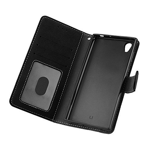 Per Sony Xperia L1 / G3311 Custodia, Con Cinturino da Polso Magnetico Snap-on Bookstyle Internamente Silicone TPU Custodie Case in pelle Protettiva Flip Cover - Retro Frosted 3 Card Slots (Nero)