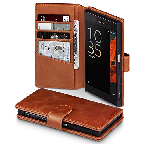 Sony Xperia XA1 Real Genuine Hand Crafted Leather Wallet Book Case Tan Sony Xperia XA1 Leather Case - GENUINE LEATHER - Executive Folio Wallet Cover Flip - Viewing Stand - Card Slots - Bill Compartment - Tan