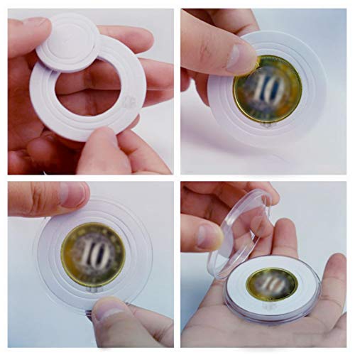 【Con 30 guarnizioni abbinate】: adatto per: monete commemorative da 20 mm, 25 mm, 30 mm, 35 mm, 40 mm, scatola rotonda di protezione regolabile con 30 pezzi, facile da adattare le dimensioni della moneta, aiuta a tenere le monete in posizione, impedendole di scivolare e graffiare.