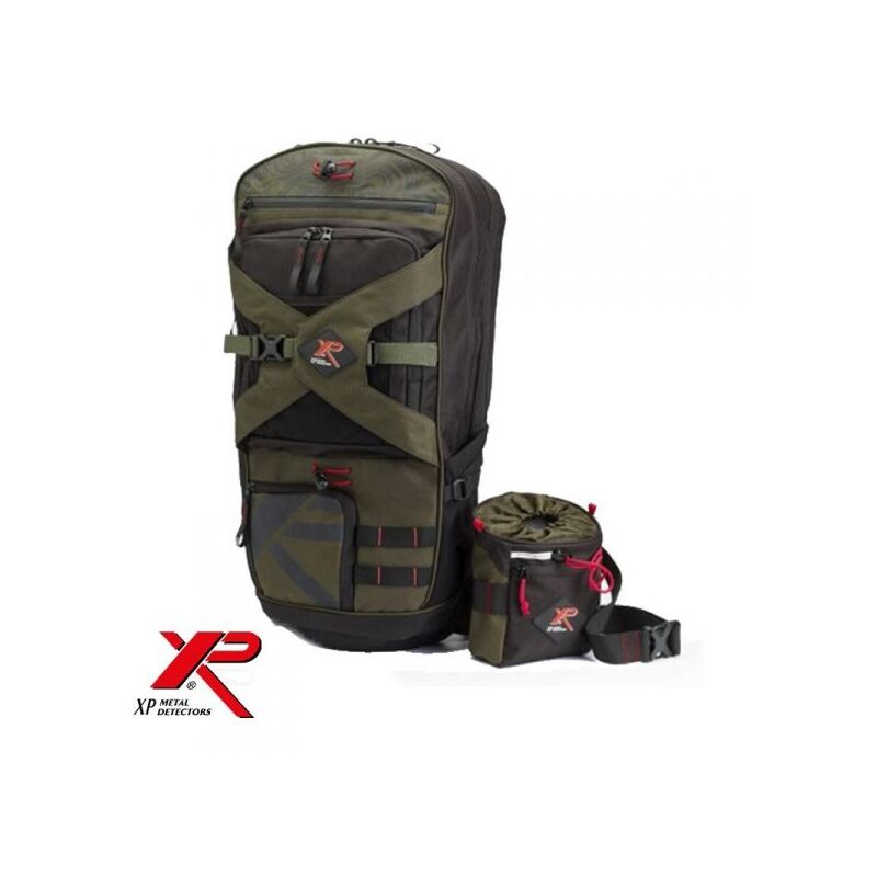 XP BACKPACK 280 con XP Find Pouch dotazione completa: zaino e sacca porta oggetti. La sacca porta oggetti a scomparti multipli ha un sistema di aggancio universale MOLLE® per appendere e fissare gli accessori, è completamente lavabile e adatta ad essere utilizzata sotto l'acqua grazie al sistema di drenaggio dell'acqua. XP BACKPACK 280 è il primo zaino realizzato appositamente per i detectoristi, pensato e creato per organizzare in un unico zaino tutto l'occorrente per lunghe sessioni di ricerca. Composto da materiali ultra resistenti (poliestere 600D e 1000D), usati negli zaini da trekking di alta gamma, XP BACKPACK 280 è uno zaino robusto e adatto all'uso in qualsiasi condizione meteorologica, grazie alla sua copertura anti pioggia. Oltre all'imbottitura posteriore e agli ampi spallacci imbottiti, ha anche 9 cinturini di regolazione distribuiti su 5 zone diverse, che consentono una regolazione semplice e personalizzata. La cintura trapuntata assicura la stabilità e il trasferimento