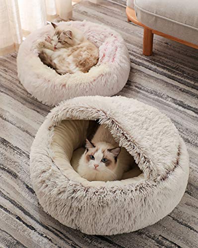 Xpnit Cuccia lavabile, per cani di piccola taglia e gatti, accogliente e calmante per cuccioli di gatto grotta per gatti e gatti (M-65 cm, marrone)