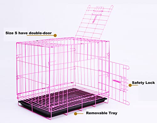 Xpnit Gabbia per cani di piccola taglia, gabbie pieghevoli per cani, in metallo, con vassoio non masticabile, per cani di piccola taglia M, gattino, coniglio (S, rosa)
