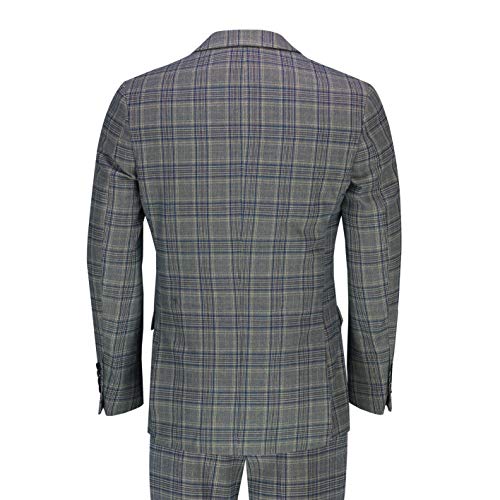 Xposed Uomo 3 Pezzi Doppio Petto Check Abito su Misura Fit Retro Style 1920 [SUIT-OTIS-BLUE-46EU]
