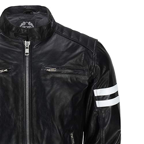 Xposed Retro vera pelle nero banda bianca che corre Chiodo da uomo in stile classico per moto [EXP-789-BLACK-WHITE-4XL]