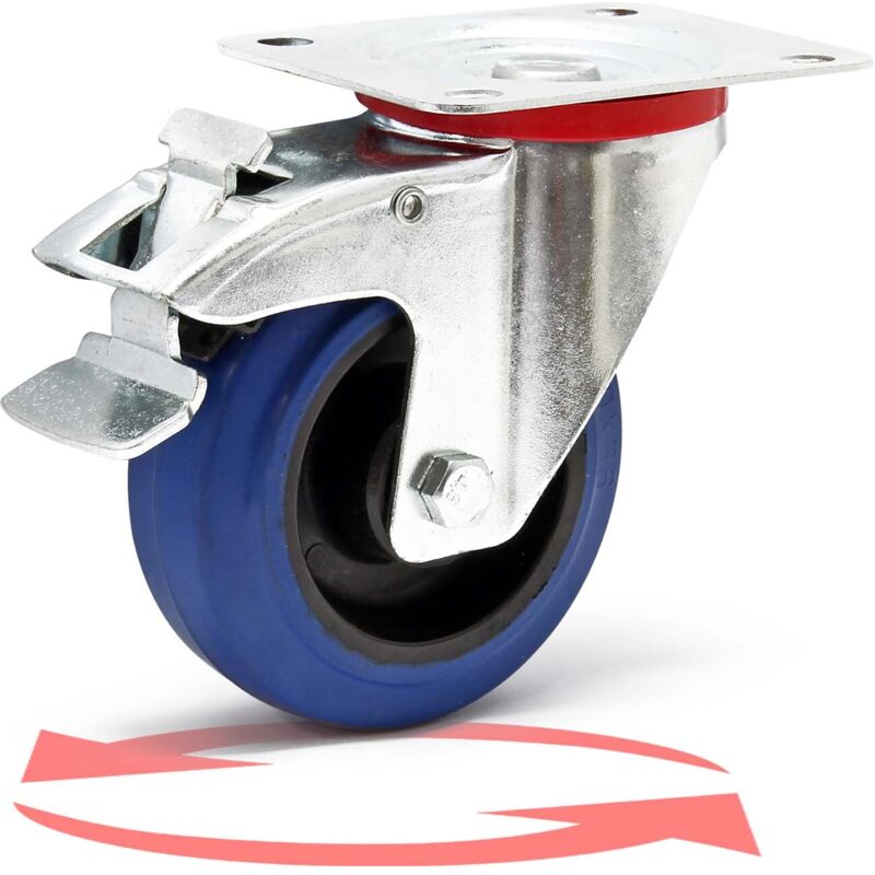 Rotella orientabile con diametro di 100 mm e piastra di montaggio 105 x 80 mm Corpo della rotella in plastica e alloggiamento in lamiera d'acciaio Massima capacità di carico di 150 kg Rivestimento in gomma elastica per uno scorrimento silenzioso La rotella orientabile è dotata di uno stabile freno di bloccaggio Per coloro che devono trasportare carichi pesanti, questa rotella orientabile è un utile aiuto. Può essere montata sotto l'appropriato supporto di trasporto agevolando lo spostamento del carico da un luogo a un altro. Nel far ciò si ha sempre il controllo sulla direzione dello spostamento e anche il cambio di direzione non comporta alcun problema. La rotella orientabile è completamente bloccabile attraverso un freno che assicura una tenuta sicura. La capacità di carico massima è di 150 kg. Il corpo della rotella è in plastica e il rivestimento in gomma elastica in blu. L'asse della rotella orientabile è avvitato e garantisce stabilità. L'alloggiamento è realizzato in lamiera