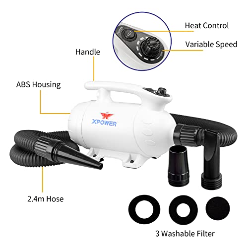 XPower B-24 Force Pet Dryer Dog Grooming with Variable Speed and 2-Heat Settings with 3 Nozzles