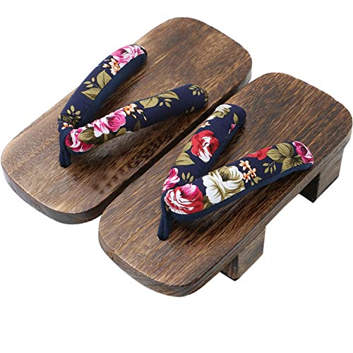 XPuing Zoccoli Geta da Uomo in Stile Giapponese, in Legno (Nero 3, Numeric_40)