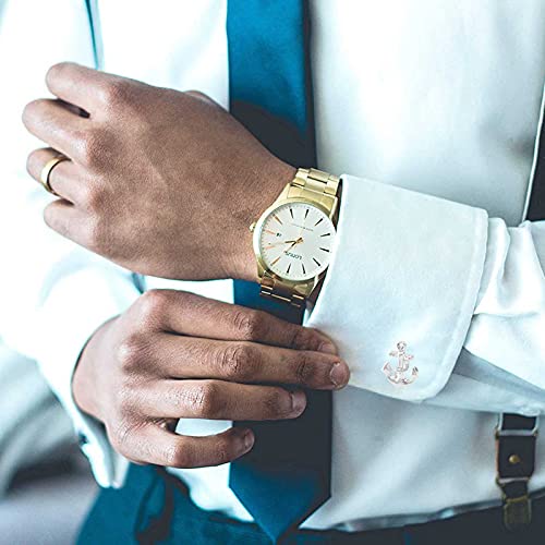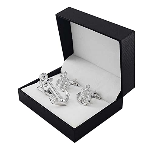 XQKXHZ Gemelli da Uomo in Acciaio Inossidabile, Set di Fermacravatta Design Classico A Forma di Ancora in Argento con Scatola Regalo, per Matrimonio, 3 Pezzi