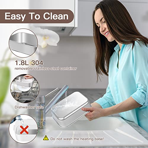【1,8 L di Grande Capacità 】- Il scalda pranzo elettrico portatile riscaldato contiene un portapranzo rimovibile in acciaio inox da 1,8 L e un portapranzo in plastica da 0,45 L per separare i diversi tipi di cibo. Dotato di un cucchiaio e di una forchetta in acciaio inox, il coperchio del scalda cibo elettrico portatile ha due piccoli scomparti integrati per riporre le posate.
