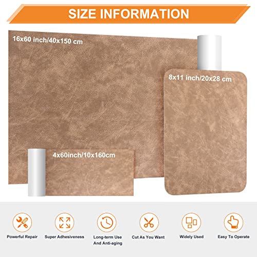 Xroam Patch di Riparazione in Pelle, 40x150 cm Toppe per Riparazione Autoadesive in Pelle, Kit di Riparazione in Pelle per Divani,Seggiolino Auto,Borse, Ristrutturazione, Beige scuro