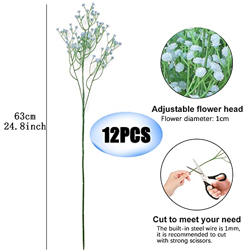 XSHAO 12 Pezzi Fiore Artificiale Gipsofila, Fiori Artificiali per Neonati, Decorazioni per Casa e Matrimoni, Fiori Finti per Cimitero, Bouquet di fiori fai da(Blu)