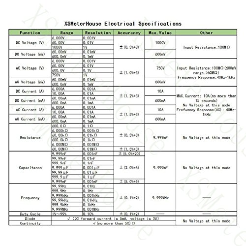 【6000 COUNTS AUTO / MANUAL RANGING】: lettura inattesa, tensione, capacità, frequenza, duty cycle e resistenza, nonché continuità infallibile, transistor, picco on-off e test diodi. Con la funzione di autonomia automatica dei 6000 conteggi, non preoccuparti di danneggiare il multimetro XSMeterHouse per meno utenti e principianti.