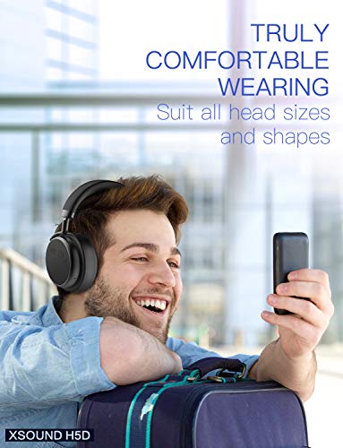 XSOUND H5D Cuffia con cancellazione del rumore 50mm Cuffia ANC con 4.0 Bluetooth, Earpad proteici, 20hrs Playtime on the Go, Lavoro, Supporto TV PC Cellphone, Nero