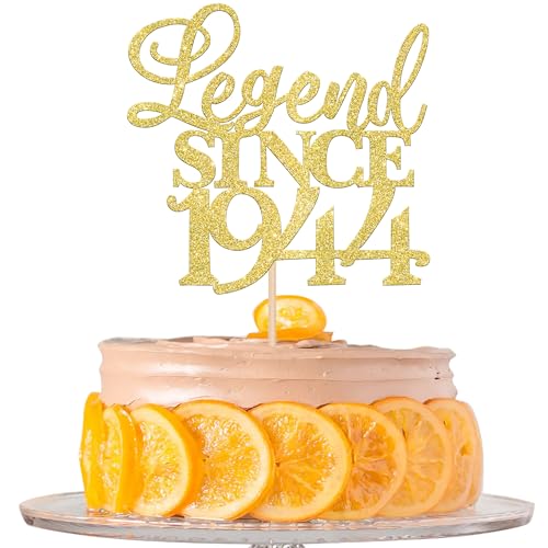 Xsstarmi 1 confezione da 1 topper per torta leggenda dal 1943 con 80° compleanno Hello 80 e favolosa decorazione per 80° compleanno, matrimonio, festa, decorazioni per torte glitterate oro
