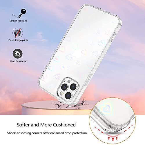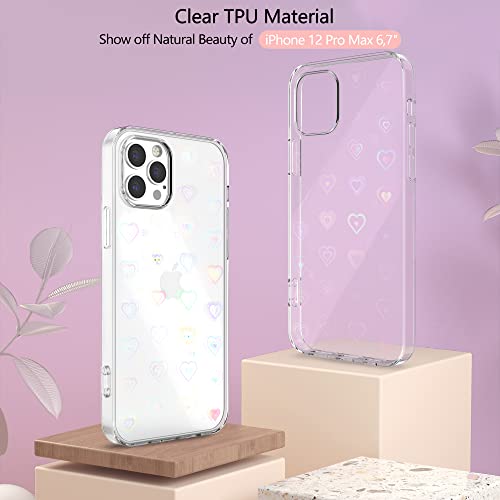 XTCASE Cover Amore Cuore per iPhone 12 Pro Max 6,7" Custodia, Trasparente Glitter Gradiente Cuori Olografici Sottile Anti Graffio Antiurto Morbido TPU Silicone Paraurti Protettiva Case