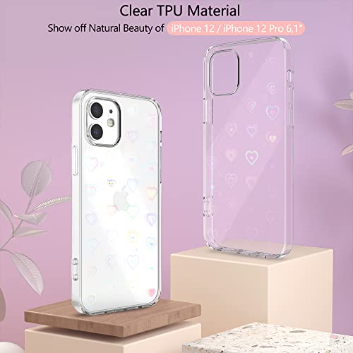 XTCASE Cover Amore Cuore per iPhone 12 / iPhone 12 Pro 6,1" Custodia, Trasparente Glitter Gradiente Cuori Olografici Sottile Anti Graffio Antiurto Morbido TPU Silicone Paraurti Protettiva Case