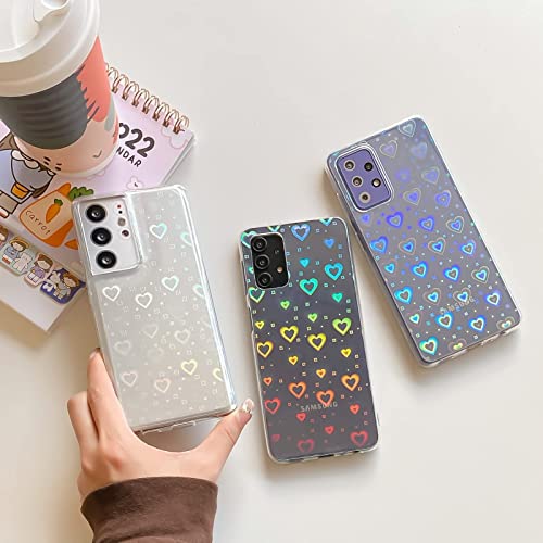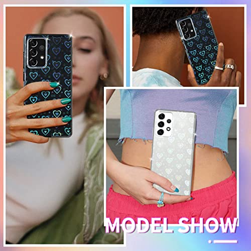 XTCASE Cover Amore Cuore per Samsung Galaxy A52s 5G / A52 5G/4G Custodia, Trasparente Glitter Gradiente Cuori Olografici Sottile Anti Graffio Antiurto Morbido TPU Silicone Paraurti Protettiva Case