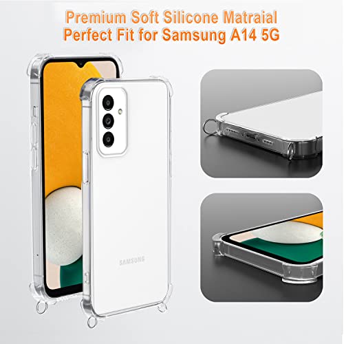 XTCASE Cover con Cordino per Samsung Galaxy A14 4G/5G, Custodia Trasparente con Collana Tracolla Laccio Collo Case, Oro Rosa