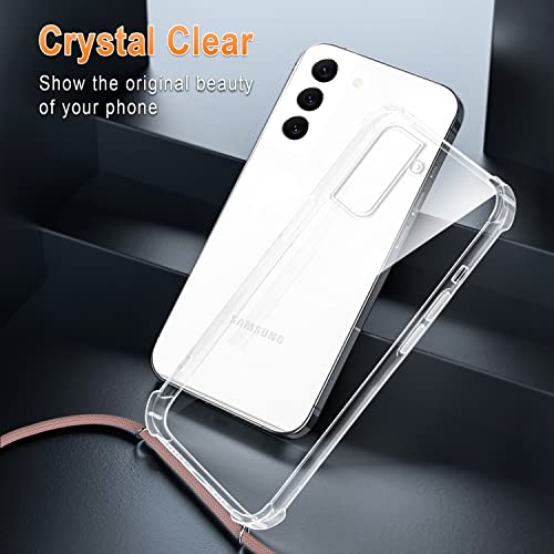 XTCASE Cover con Cordino per Samsung Galaxy S23, Custodia Trasparente con Collana Tracolla Laccio Collo Case, Oro Rosa