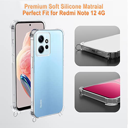 XTCASE Cover con Cordino per Xiaomi Redmi Note 12 4G, Custodia Trasparente con Collana Tracolla Laccio Collo Ultra Sottile Morbido TPU Silicone Antiurto AntiGraffio Case, Nero