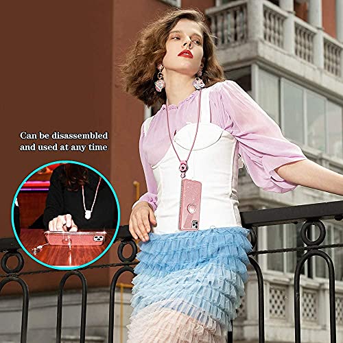 XTCASE Cover Glitter con Cordino per iPhone 11 6,1", Brillantini Bling Custodia con Supporto Anello a 360° Ultra Sottile Antiurto Morbid TPU Protettiva Case, Rosa