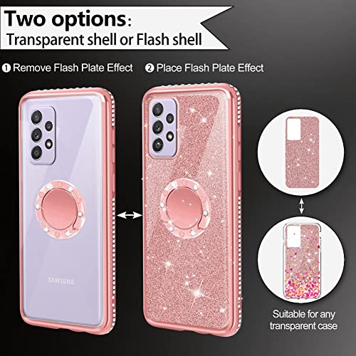 XTCASE Cover Glitter con Cordino per Samsung Galaxy A52s 5G / A52 5G/4G, Brillantini Bling Custodia con Supporto Anello a 360° Ultra Sottile Antiurto Morbid TPU Protettiva Case, Rosa