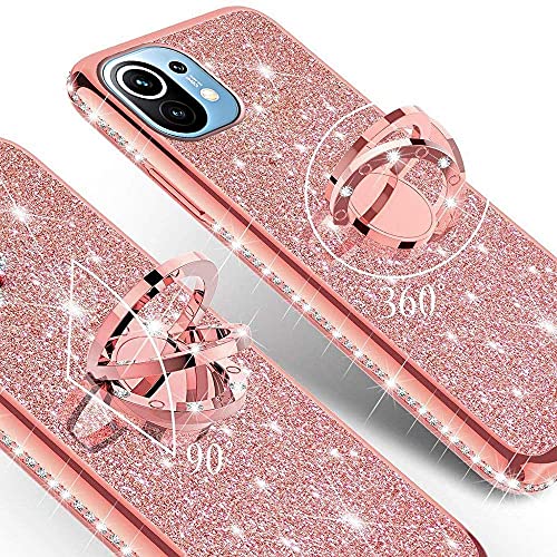 XTCASE Cover Glitter per Xiaomi Mi 11, Brillantini Bling Custodia con Supporto Anello a 360° Ultra Sottile Antiurto Morbid TPU Silicone Protettiva Case, Rosa