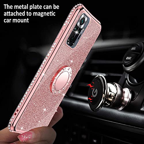 XTCASE Cover Glitter per Xiaomi Redmi Note 10 Pro/Note 10 Pro Max, Brillantini Bling Custodia con Supporto Anello a 360° Ultra Sottile Antiurto Morbid TPU Silicone Protettiva Case, Rosa
