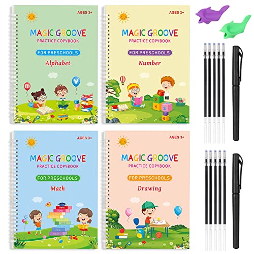 XTDMJ Quaderni magici, 4 quaderni magici per esercizi riutilizzabili, per bambini, calligrafia, numeri, disegno, lettere, scrittura, 26 x 18,5 cm