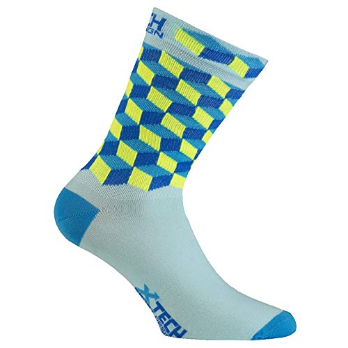 Xtech XT117 Calze Ciclismo, Azzurro/Giallo - 39/42, Multicolor