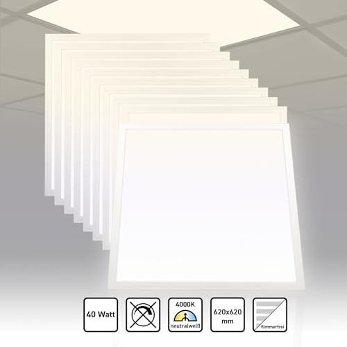 Xtend PLe2.1 - 10 lampade a LED 62 x 62, bianco neutro, 40 W, 4000 K, non dimmerabili, PMMA ultra sottile, ENEC18, 62 x 62, serie PLe2.1