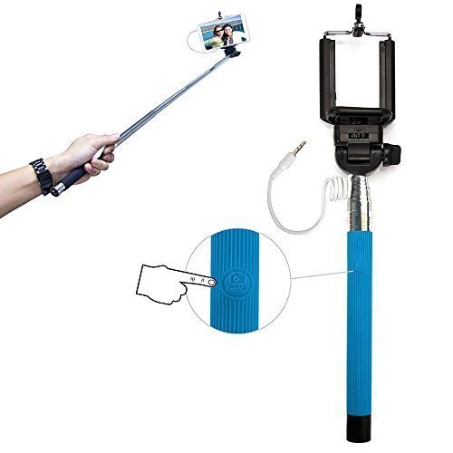 Xtra-Funky Esclusivo Pulsante Universale monopiede Selfie Bastone con Collo Regolabile e Corpo Estensibile per Samsung, iPhone, Sony - Blu