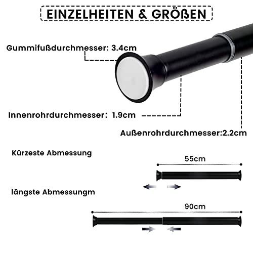 XtraCare Bastone Tenda a Pressione, Bastone Tenda Doccia, Asta Tenda Telescopica per Finestre/Armadio/Cucina/Bagno, Nero, 55-90 cm