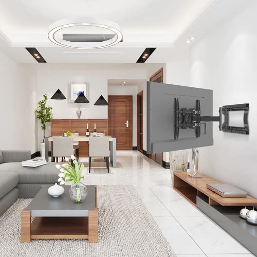 Allungabile, BRACCIO LUNGO GIREVOLE fino a 80 cm carico massimo: 60 / Ruotabile / Girevole: 180° / Peso dell'imballaggio: 11 kg. Il robusto supporto universale a parete è flessibile e completamente mobile. La staffa è estensibile e può essere facilmente ruotata a sinistra e a destra, nonché ruotata dal formato orizzontale a quello verticale. Il braccio girevole raggiunge questo risultato grazie ai suoi 3 giunti sulla parete, tra i segmenti del braccio e dietro il televisore.